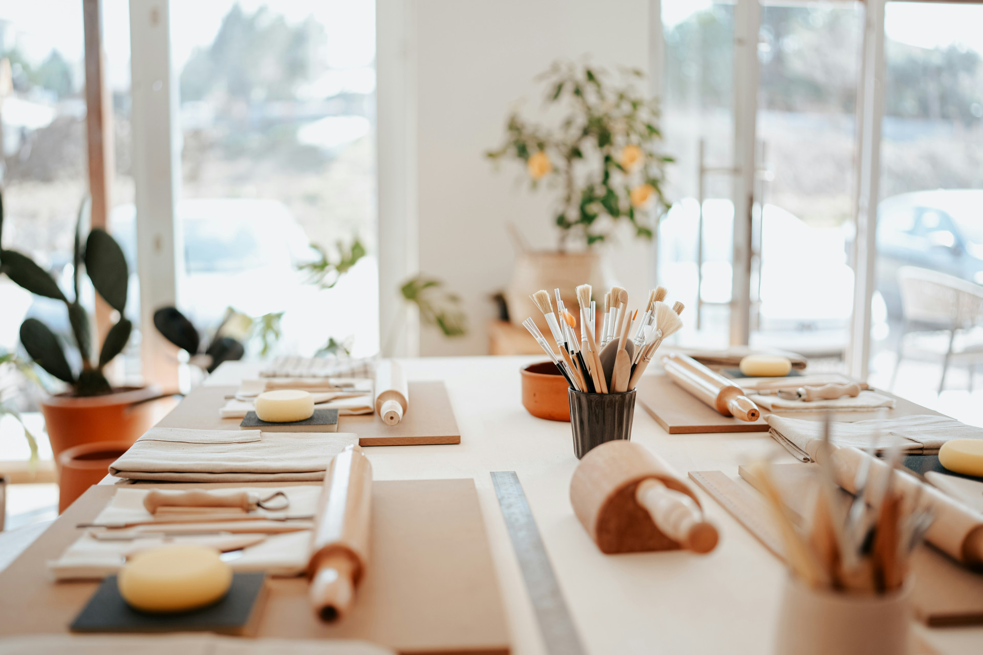 - Pensler og svamper: En myk pensel er god til å glatte ut lagene, mens en svamp kan brukes til å duppe og skape tekstur.